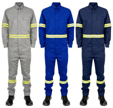 O Conjunto Calça e Camisa RF Risco 2 (Resistente ao Fogo e Arco Elétrico) são roupas de proteção que cobre tronco e membros, oferecendo segurança contra fogo repentino e arco elétrico.